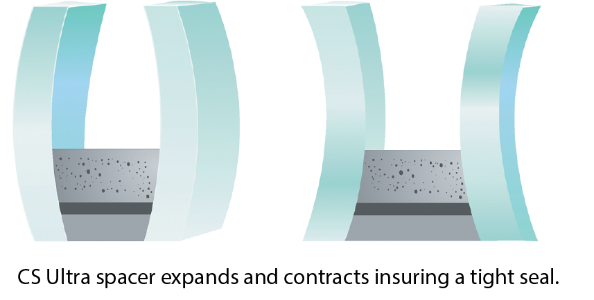 Whether it is cars whizzing by, restless neighbors next door, airplane noise or power tools blasting on a Saturday morning, CS Ultra Spacer technology helps keep it quiet inside. That’s because the closed-cell polymer foam in CS Ultra Spacer transmits very little sound compared to conventional metal spacers. Just another reason you’ll be more comfortable in your home with CS Ultra Spacer window systems.