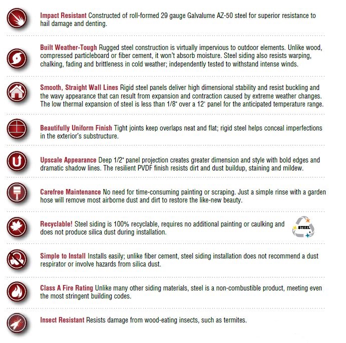 - Steel siding can now be cut with an approved saw blade, making installation faster and easier.