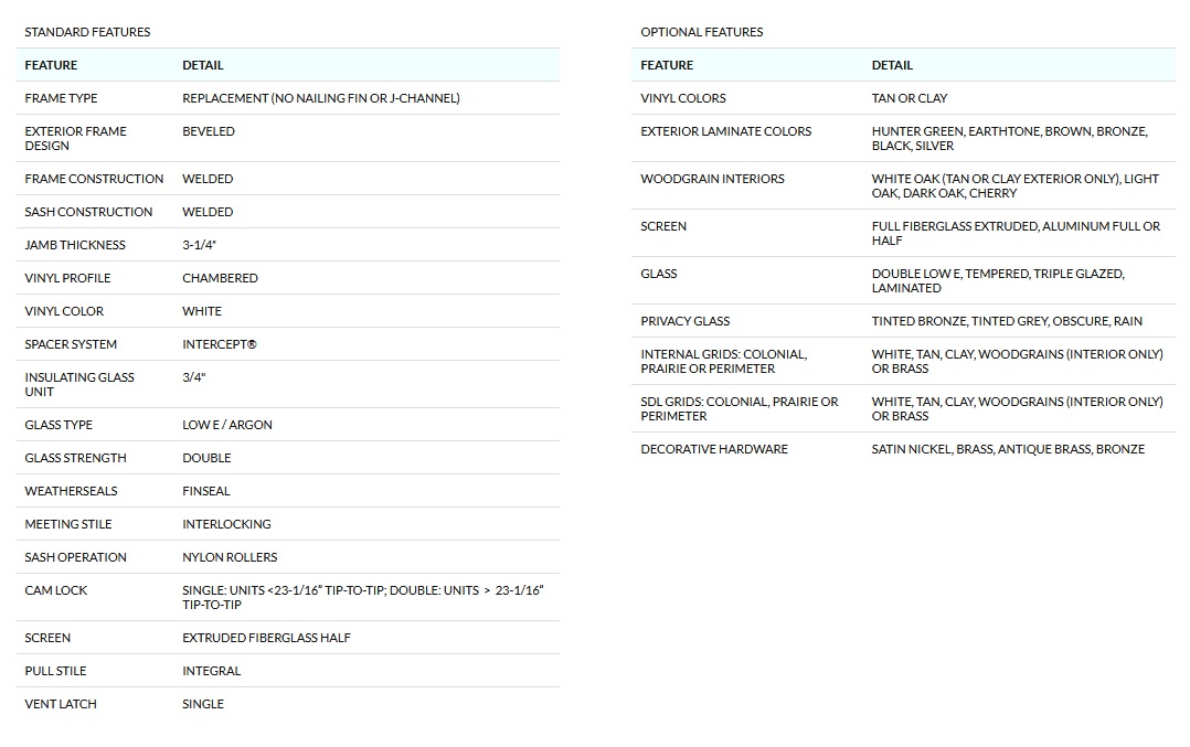- Multiple lines of high-density weatherstripping surround each sash reduces drafts.