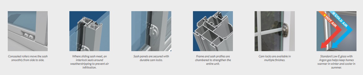 - Sash glide smoothly on corrosion-resistant nylon rollers and a multi-stepped vinyl insert..