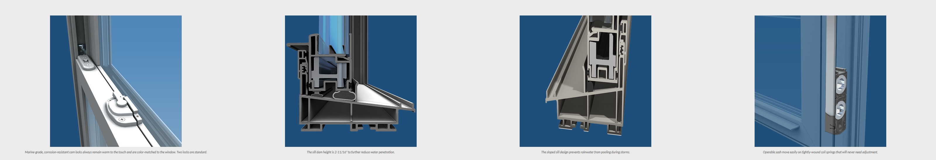 - Continuous, integral lift rails provide fingertip ease of operation and are molded into the sash itself to prevent them from becoming loose or breaking away from sash with regular use.